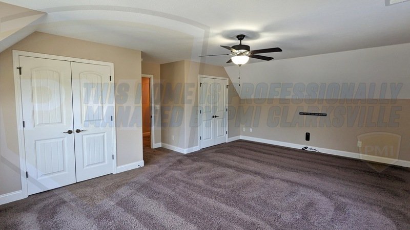 Come check out this gorgeous three bed, two and a half bath home with bonus room in a cul de sac in Dunbar subdivision! There are so many upgrades - you'll just have to see it to believe it! From a storm shelter, a 22Kw generator system, to the custom tile shower & separate soaking tub, too many to list! The living room features a floor to ceiling stone fireplace for staying cozy on cold winter nights. The kitchen features granite countertops, stainless steel appliances, and custom cabinetry. Not only is there an eat in area attached to the kitchen, but also a formal dining room with coffered ceiling. Upstairs there is a bonus room with extra closet space that can be used as the fourth bedroom! The primary bedroom has a double trey ceiling, primary bathroom has double vanities, granite countertops, separate tub and shower. Step outside onto the covered back patio with ceiling fan for extra comfort. It leads into the huge backyard with privacy fence. Come make this your next home! Trash pick up is included. Tenant is responsible for all utilities to include electric, water, sewer, gas, etc. No pets allowed. Call or email our office with any questions! 931-378-6803 or info@pmiclarksville.com.
